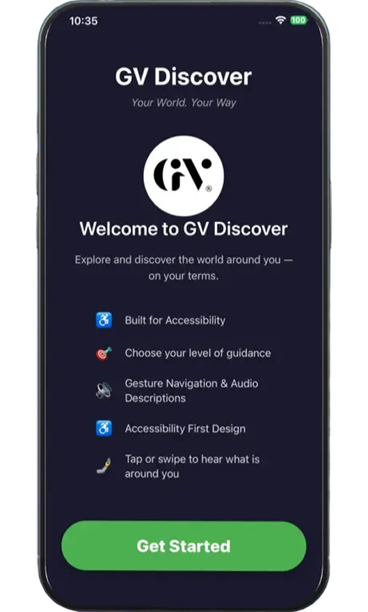 GV Discover is a voice-first app that helps blind and visually impaired individuals explore their surroundings with confidence and ease. Powered by advanced spatial AI and Google's Gemini, GV Discover turns your smartphone into a real-time environmental awareness tool.